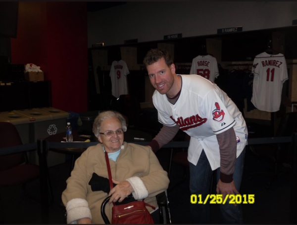 Chisenhall hit his first grand slam in the 9th inning giving victory to the Indians by a score of 5-3. Many years later Jean had a chance to meet Lonnie and Tom told him that he was his mother’s favorite player. Chisenhall didn’t recall that winning grand slam but was accommodating to Jean, conversed with her, and took photos.