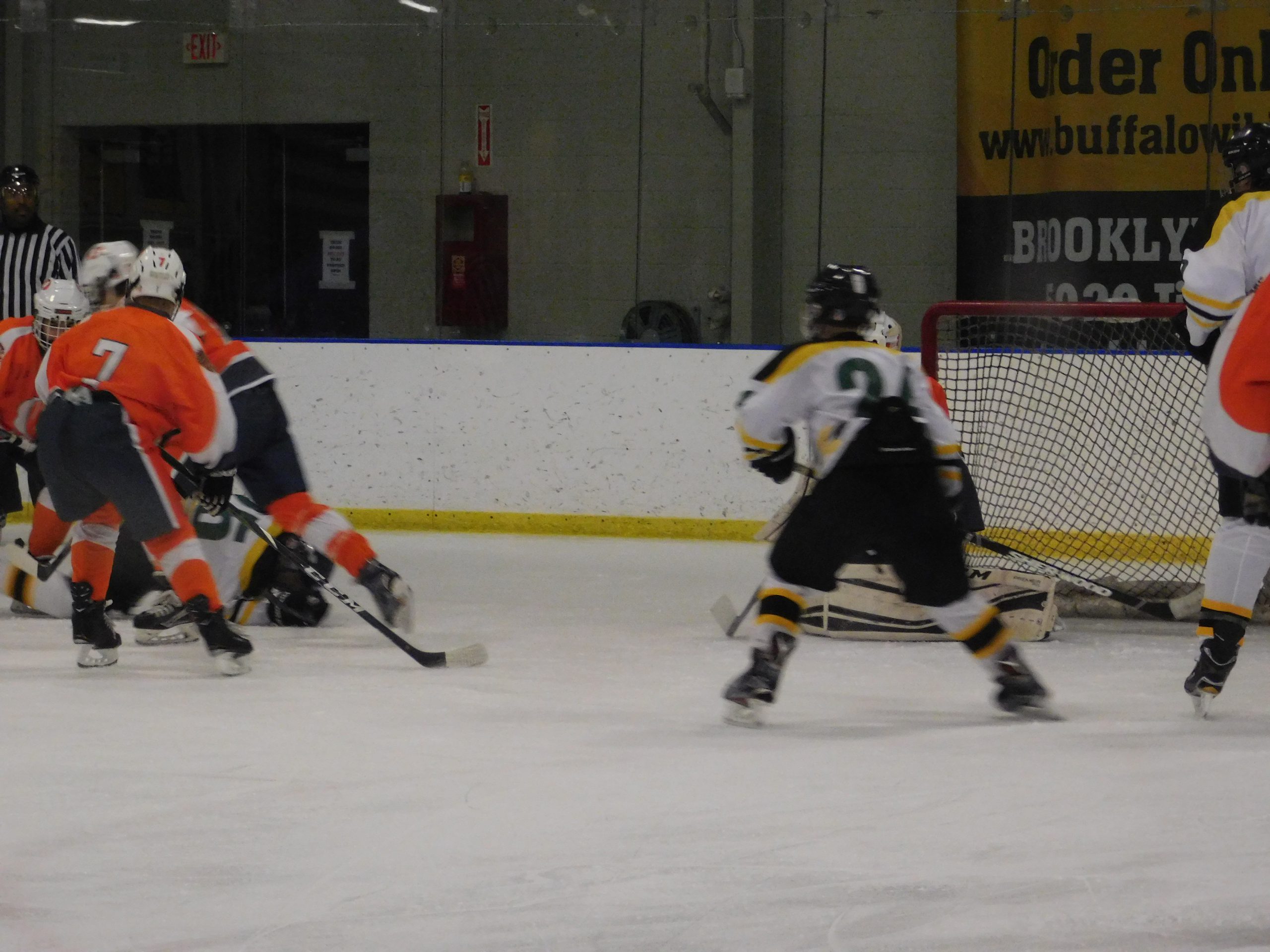 Orange goalie Danny Moore was under siege most of the night by the Comets potent offense, and on the night faced 59 total shots.