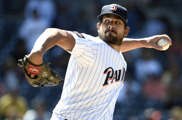 He was claimed off waivers by the Padres on April 8, 2016, and right away pitched a lot for San Diego, throwing mostly in the 7th innings of games. In 22 of his appearances he threw more than one inning.