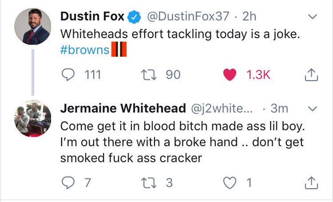 Whitehead’s account according to those on Twitter was immediately suspended and for good reason. The Browns should take action and dump him off the roster next for his actions.