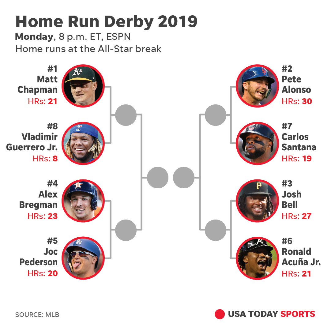 Should he reach the finals, he will go up against one of these competitors – Matt Champan of Oakland, Vlad Guerrero Jr. of the Blue Jays, Alex Bregman of the Astros and Joc Pederson of the Los Angeles Dodgers.