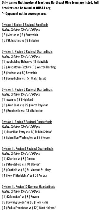 Our friend at Northeast Ohio HS Sports (Click HERE to see their twitter account), has broken down the slate for Friday