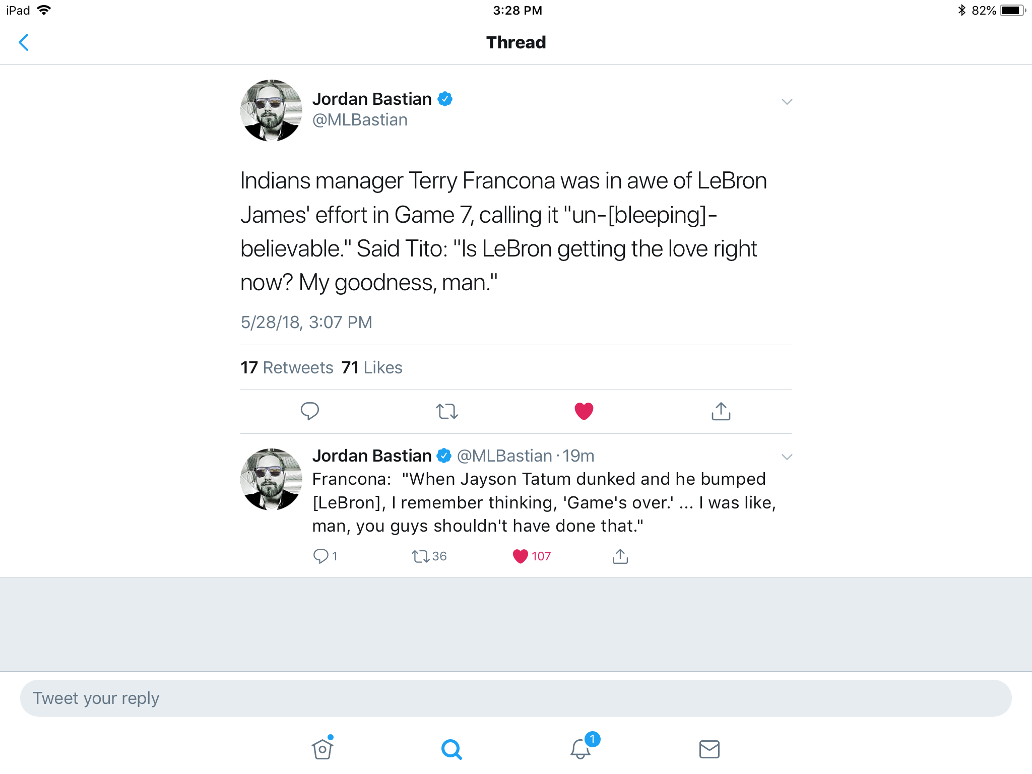 One Cleveland sports figure who was asked and spoke about James today is Indians manager Terry Francona, who was more than impressed with the effort by LBJ.