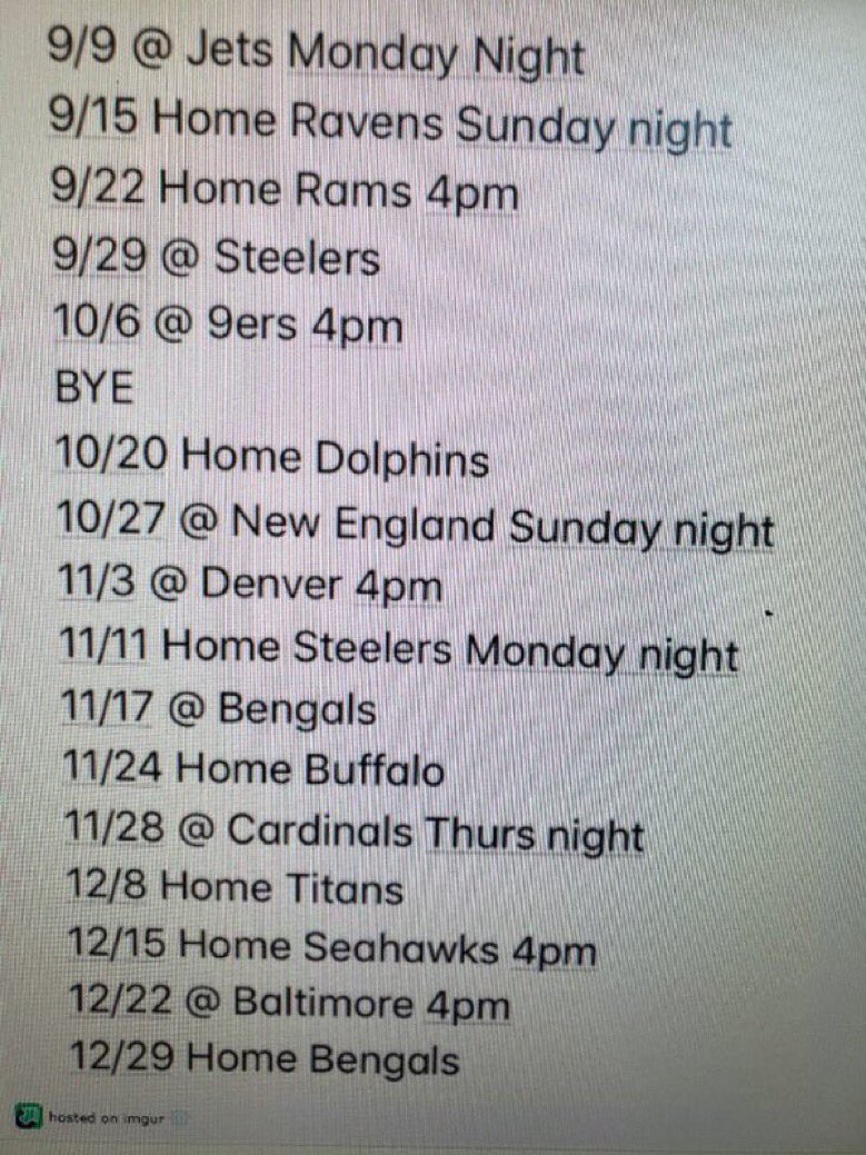 Here’s the supposed schedule that is going around: