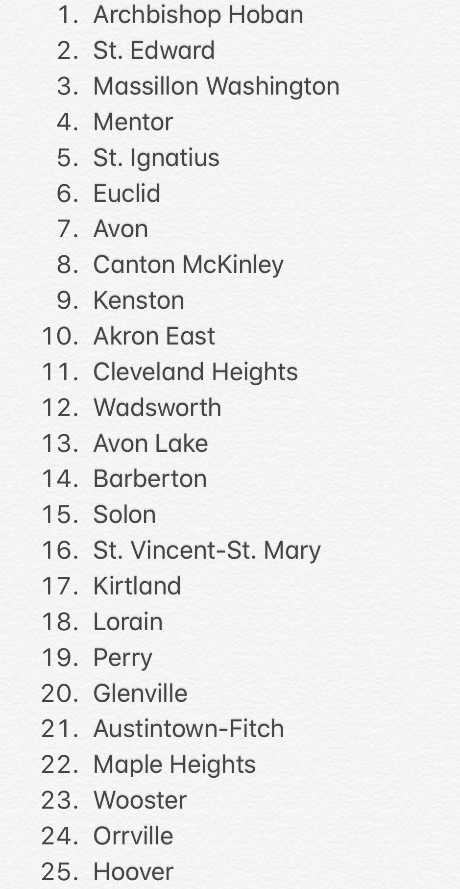 With a week before the start of the season, here’s a Top 25 of the area teams provided by Northeast Ohio HS Sports: