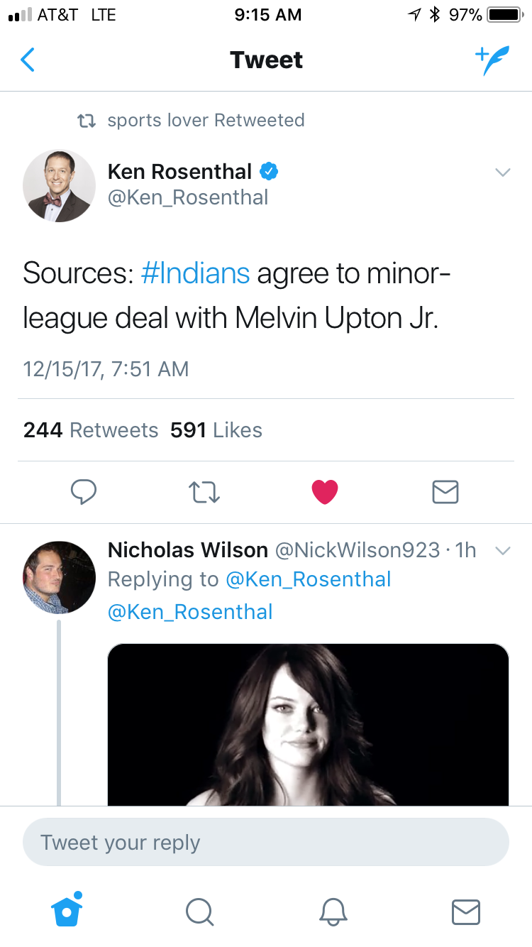 The winter meetings are over but the Indians are by no means done making moves, as this morning Ken Rosenthal reports the team has come to terms on a minor league deal with outfielder/third basemen Melvin Upton Jr.