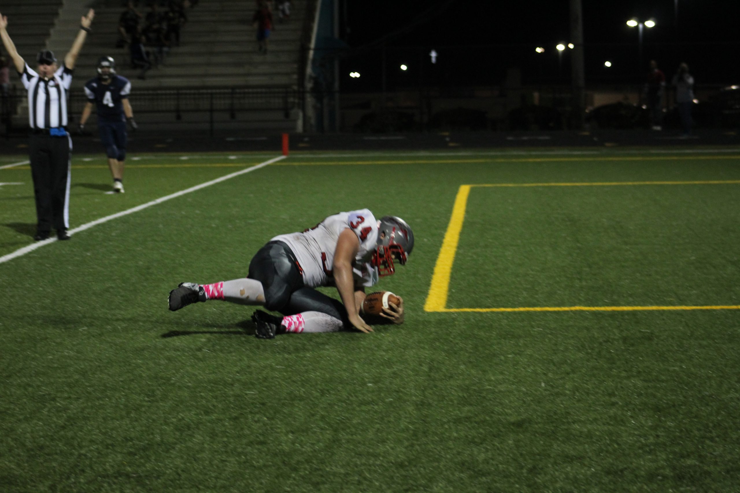At 7:35 In the third quarter the Redmen were able to put one in the end zone bringing the score to 14-0.