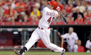Right fielder Scott Schebler had the biggest night for the Reds, finishing 4-for-5 from the plate and driving in the final three runs of the game for Cincinnati with an RBI single in the seventh and a two-run homer off of Josh Tomlin in the ninth.