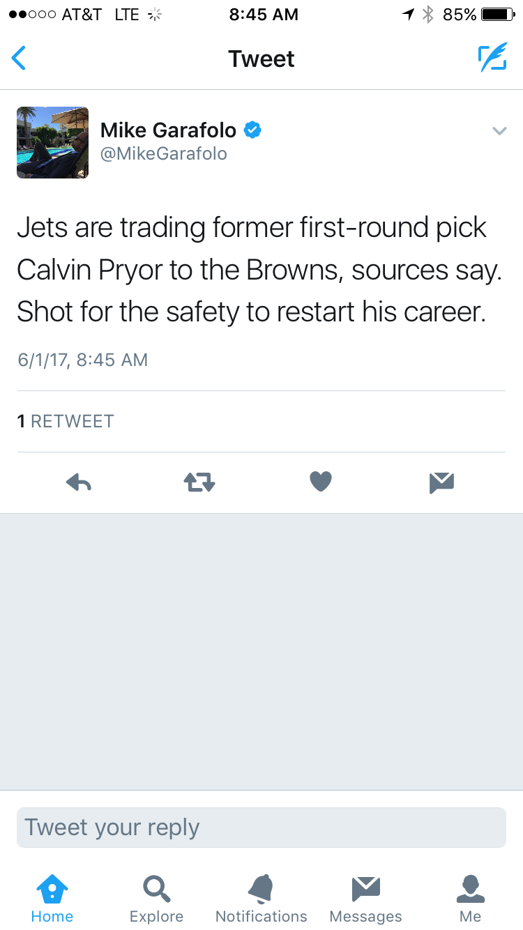 The Browns continue to look to shore up the secondary and will be making a move today for former Jets first-round pick Calvin Pryor.