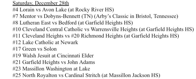 Christmas is over and New Year’s is next, but that’s not stopping some great high school boys basketball, and tonight there’s a number of games in and around Northeast Ohio.